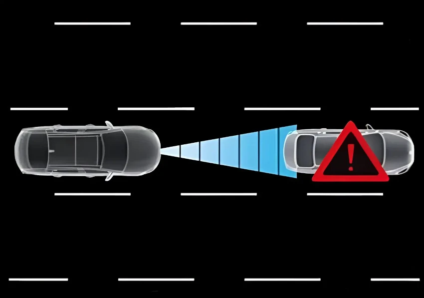 Mendeteksi risiko tabrakan melalui suara alarm dan layar peringatan yang didukung teknologi sistem pengeraman otomatis apabila terdeteksi potensi tabrakan.