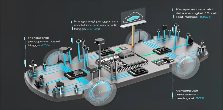 Struktur elektronik yang memiliki kemampuan transmisi data 10 kali lipat lebih cepat dan didukung kecerdasan automated driving.