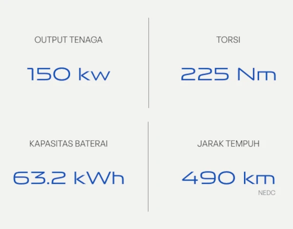 Nikmati kebebasan berkendara dengan daya tahan baterai yang besar memungkinkan hingga 490km.